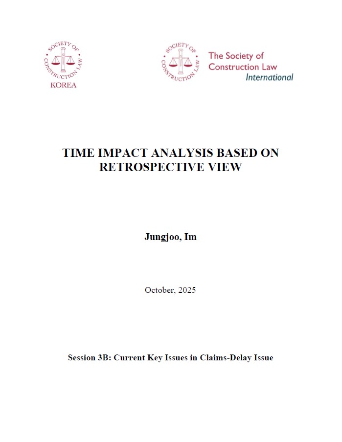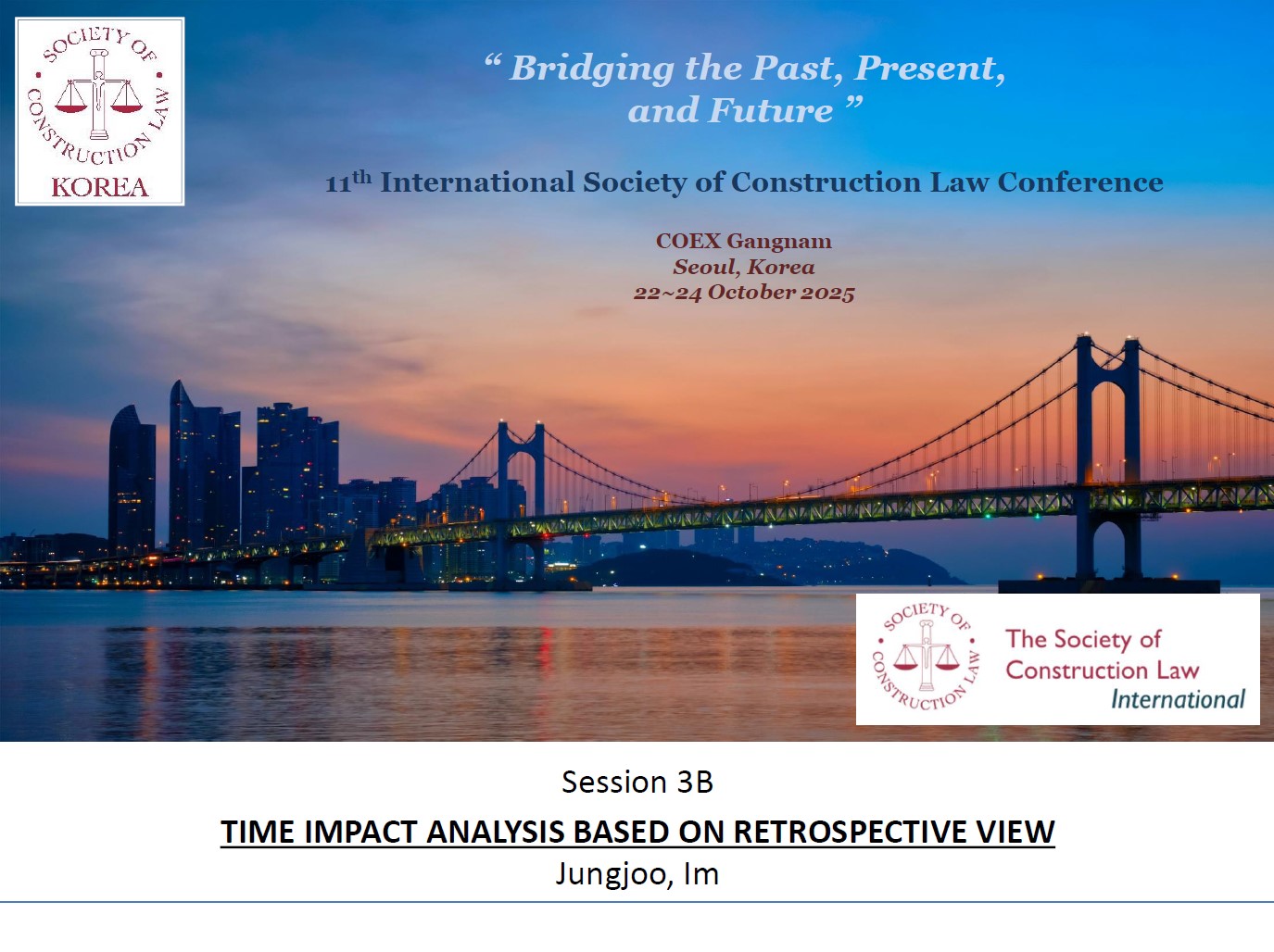 제11회 SCL 국제학술대회에서 임정주 대표가 발표한 Time Impact Analysis Based on Retrospective View 자료를 공유드립니다.